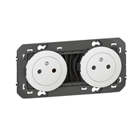 > DOUBLE PRISE DE COURANT 2P+T . SURFACE PRÉ-CABLÉE BLANC DOOXIE