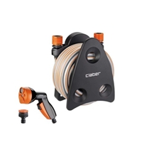 > MINI SET BALCONY PORTE TUYAU . COMPACT COMPLET. Le kit comprend: 10 m de tuyau de 9-13,. 1 nez de robinet 20-27 réduction 15-21,. 2 raccords automatiques,. 1 pistolet multifonction avec perlage.