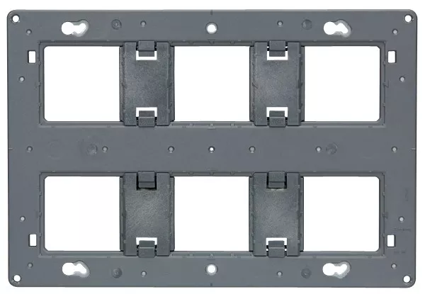 > SUPPORT GRAND FORMAT BATIBOX POUR PROG MOSAIC - 2 X 3 POSTES 2 X 6/8 MODULES Supports pour fixation d'appareillage Programme Céliane et Mosaic dans les boîtes Batibox (sauf réf. 802 64/66/50/68)