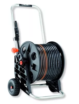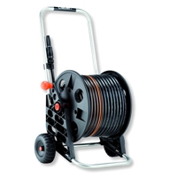 > DÉVIDOIR COMPLET TAMBOUR P.P. Livré avec raccords, lance à jet 25m de tuyau Ø14