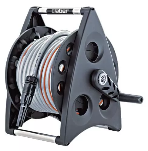 > CHARIOT DÉVIDOIR COMPLET Livré avec raccords, lance à jet 25m de tuyau Ø15