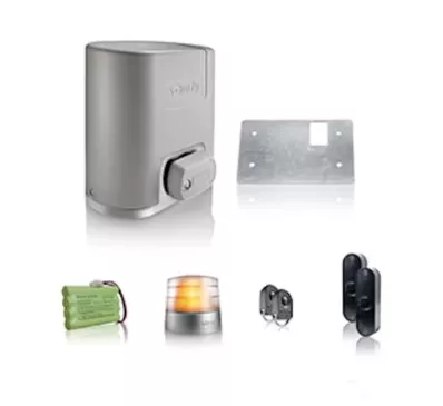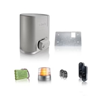 > ELIXO SMART IO PACK CONFORT Motorisation pour portail Coulissant 6m ou 400Kg par vantail Livré avec : Télécommandes, feu, cellules et batterie.