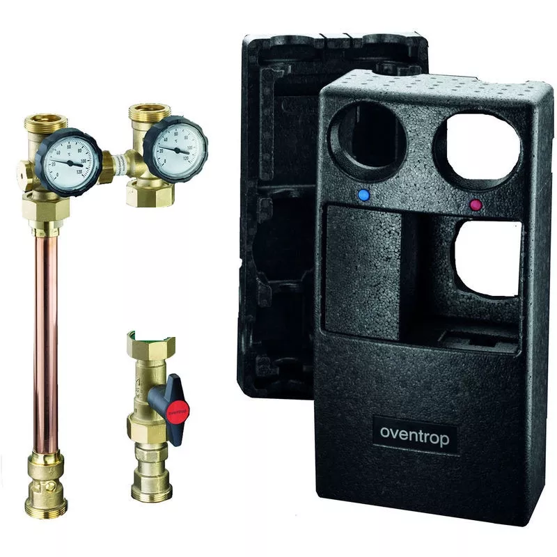 > CIRCUIT DIRECT Comprenant : - 2 vannes d'arrêt avec thermomètre et clapet thermosiphon - Entrée / Sortie 40 x 49 pour circulateur 40x49 entraxe 180mm