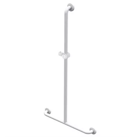 > MAIN COURANTE EN T Acier inox époxy blanc 60 x 120 cm Ø 32 mm Avec support douchette