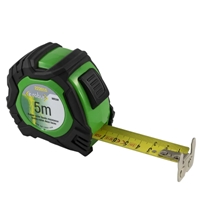 > MÈTRE RUBAN 5M + MAGNET Mètre ruban acier Revêtu de nylon Mécanisme autoblocant Embout magnétique à 4 rivets Crochet évasé Ruban largeur 25mm Livré avec dragonne