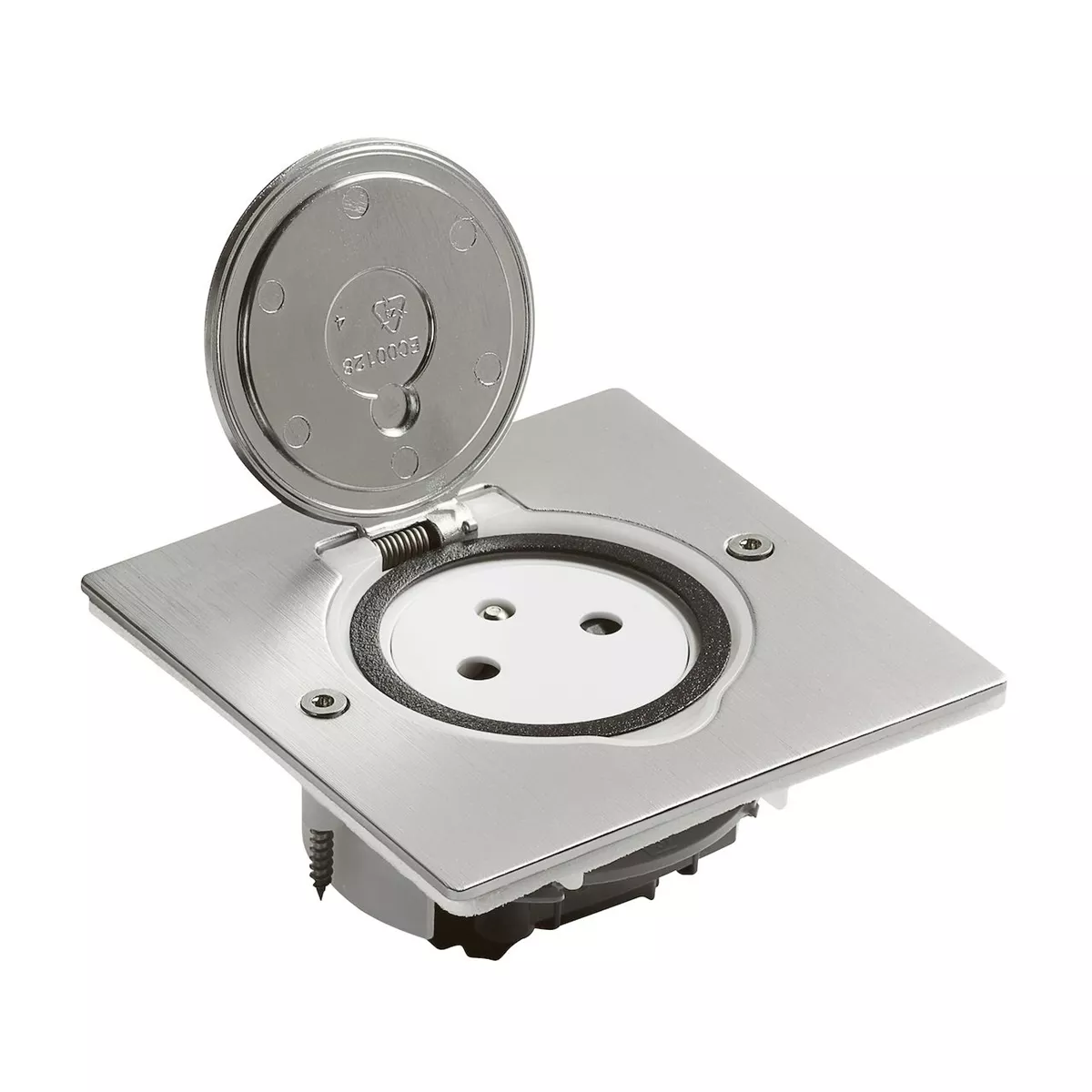 PRISE DE SOL 2P+T FB CARRE INOX BROSSE
